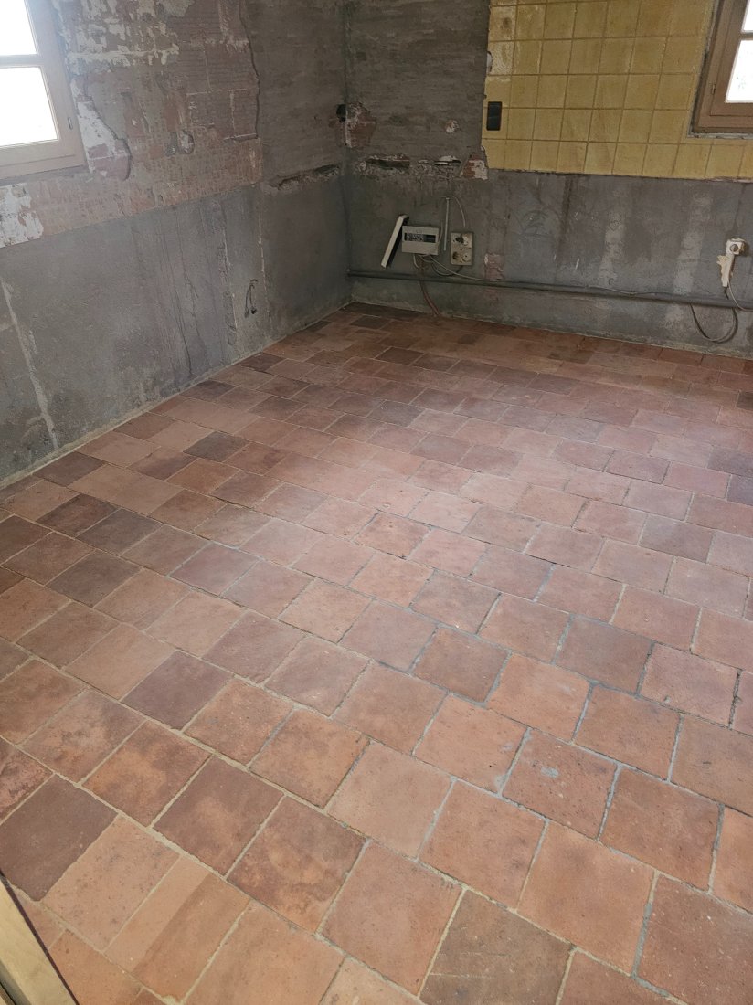 Chez 3D Occitanie, nous sommes passionnés par la valorisation du patrimoine et la préservation des matériaux authentiques. Pour ce chantier, l’objectif était de restaurer un sol en tomettes d’époque, situé dans une ferme datant du 17e siècle. Notre mission consistait à éliminer les résidus, salissures et anciennes couches de cire ou de vernis, tout en respectant la fragilité de ces tomettes en terre cuite, véritables témoins du savoir-faire artisanal d’autrefois. Grâce à l’aérogommage, nous avons pu révéler la teinte naturelle et la texture d’origine, offrant ainsi une seconde jeunesse au sol tout en conservant son caractère historique.